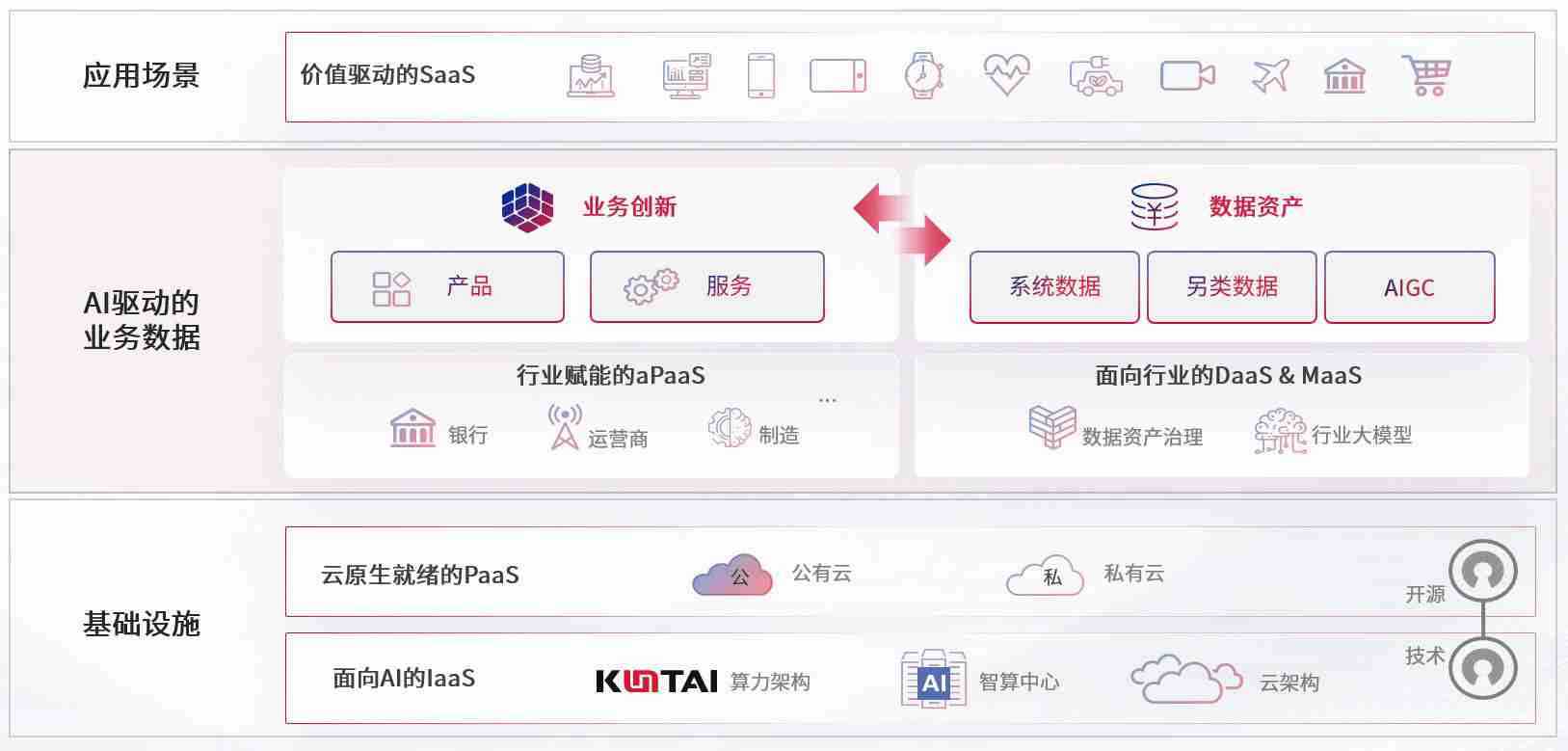 数字时代,,,,围绕企业数字化转型的关键要素,,,,NO钱包数码开创性的提出数云融合战略和技术体系框架,,着力在云原生、、、、数字原生、、、AI原生和信创产业上架构产品和服务能力,,,为处在不同数字化转型阶段的快消零售、、、、汽车、、、、金融、、医疗、、政企、、教育、、运营商等行业客户提供泛在的敏捷IT能力和融合的数据驱动能力,,,,构建跨界融合创新的数字业务场景和新业务模式,,助力企业级客户建立面向未来的核心能力和竞争优势,,,,全面推动社会的数字化、、、智能化转型升级。。。。